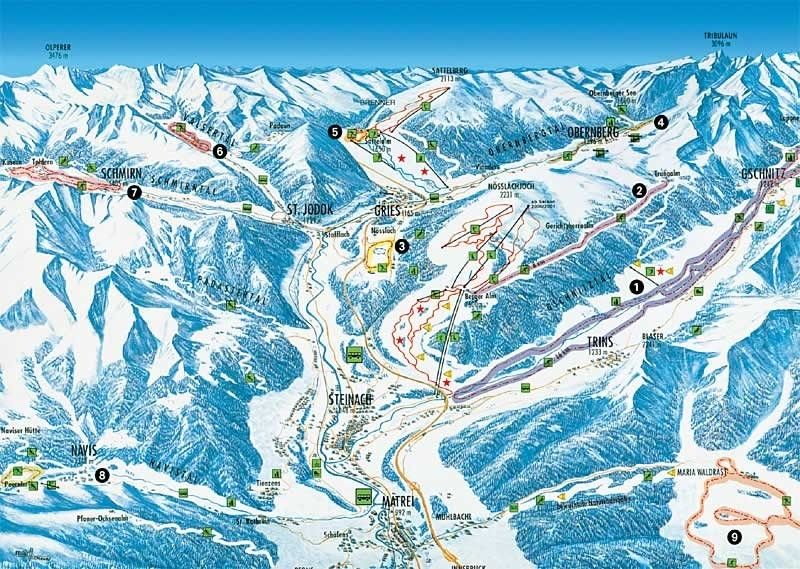 Dolina Wipptal rozciąga się w sercu Tyrolu pomiędzy Innsbruckiem a przełęczą Brenner, sąsiadując tym samym z włoską prowincją Bolzano. Razem z przylegającymi do niej sielskimi dolinami stanowi ona znany region wypoczynkowy dla mieszkańców Innsbrucka, będąc jednocześnie celem zimowych i letnich wypraw dla wielu turystów. Tutejszy krajobraz z imponującymi alpejskimi szczytami przyciąga wielu sportowców, począwszy od amatorów wędrówek, przez fanów mountainbike, na narciarzach skończywszy. Oni w szczególności potrafią docenić tereny narciarskie Innsbrucka.Dojazd Trins