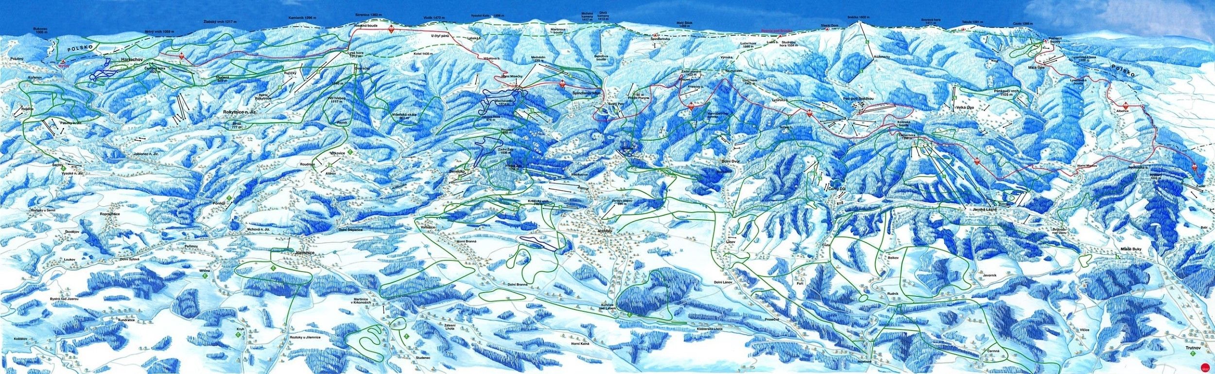 Cały teren Černa Horá – Pec liczy w sumie 90 km tras do narciarstwa biegowego.