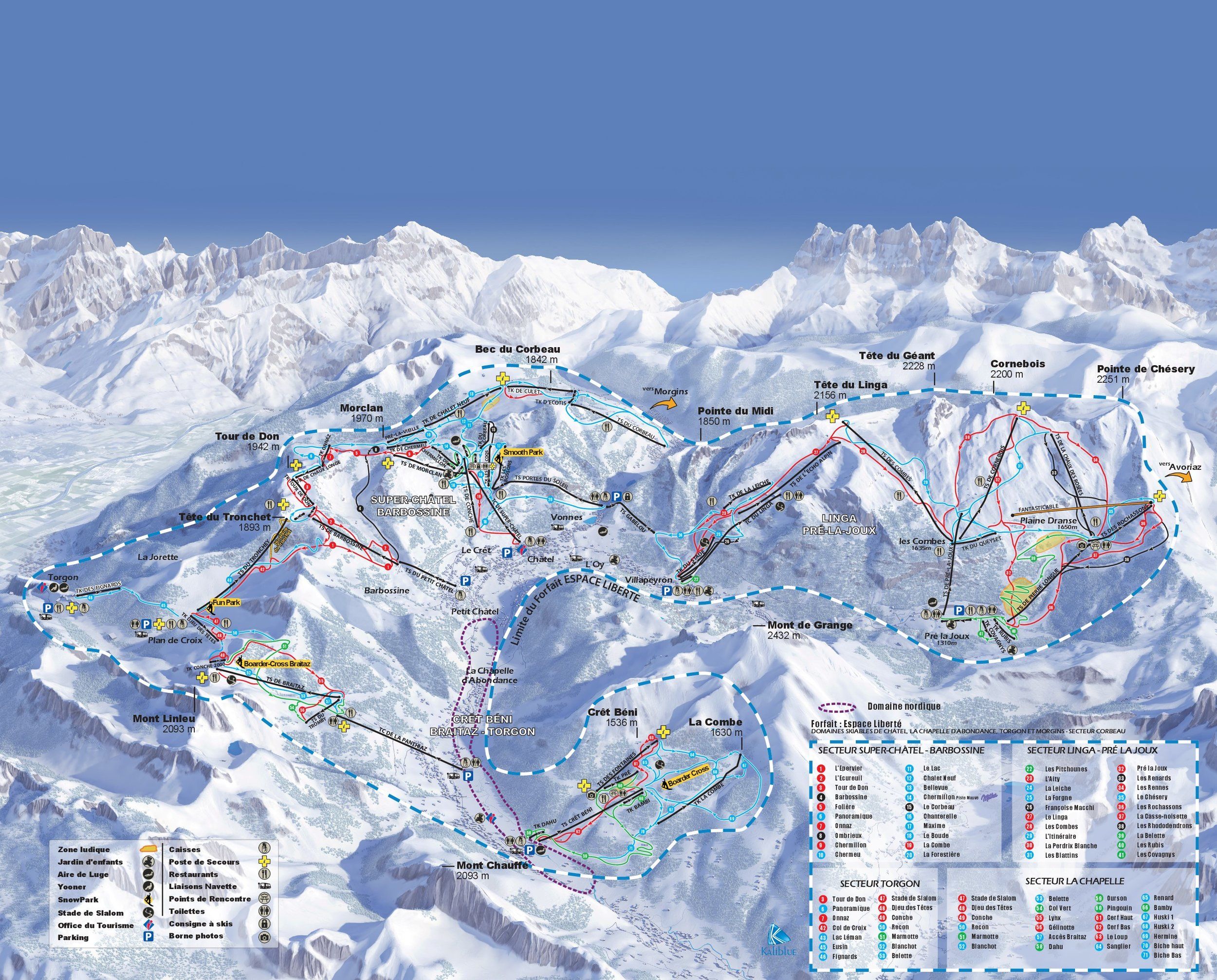 Dzięki karnetowi narciarskiemu "Les Portes du Soleil" mają Państwo do dyspozycji nawet 580 km tras narciarskich, które można osiągnąć dzięki bezpośrednim połączeniom do Avoriaz oraz szwajcarskich miejscowości Torgon i Morgins. (patrz region narciarski).