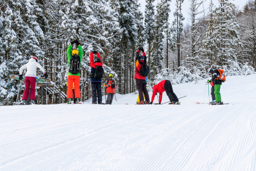 Nie należy lekceważyć rozgrzewki przed pierwszym zjazdem, aby uruchomić krążenie i rozgrzać mięśnie. Dzięki temu zmniejsza się ryzyko kontuzji na stoku.