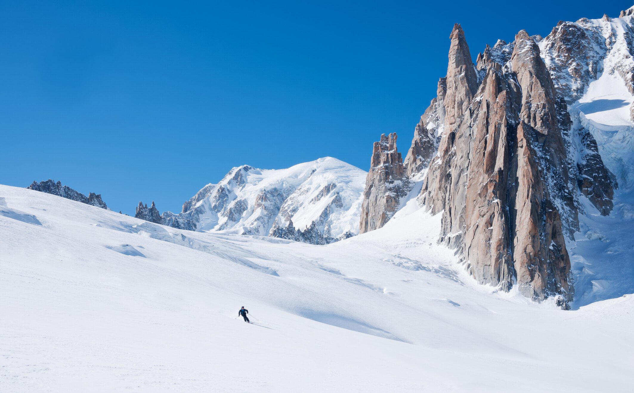 Vallée Blanche to jedna z najsłynniejszych tras skiturowych na świecie, prowadząca przez zapierający dech w piersiach krajobraz lodowców w masywie Mont Blanc. Zjazd rozpoczyna się na wysokości 3 842 metrów na Aiguille du Midi, skąd roztaczają się wspaniałe widoki na Mont Blanc. Ze względu na strefy szczelin i zmieniające się formacje lodowca, przewodnik górski jest prawie zawsze wysoce zalecany na tej trasie w ośrodku narciarskim Chamonix. Przejścia przez „Mer de Glace” – słynne morze lodu – są szczególnie imponujące na jednej z tych tras narciarskich dla zaawansowanych narciarzy.