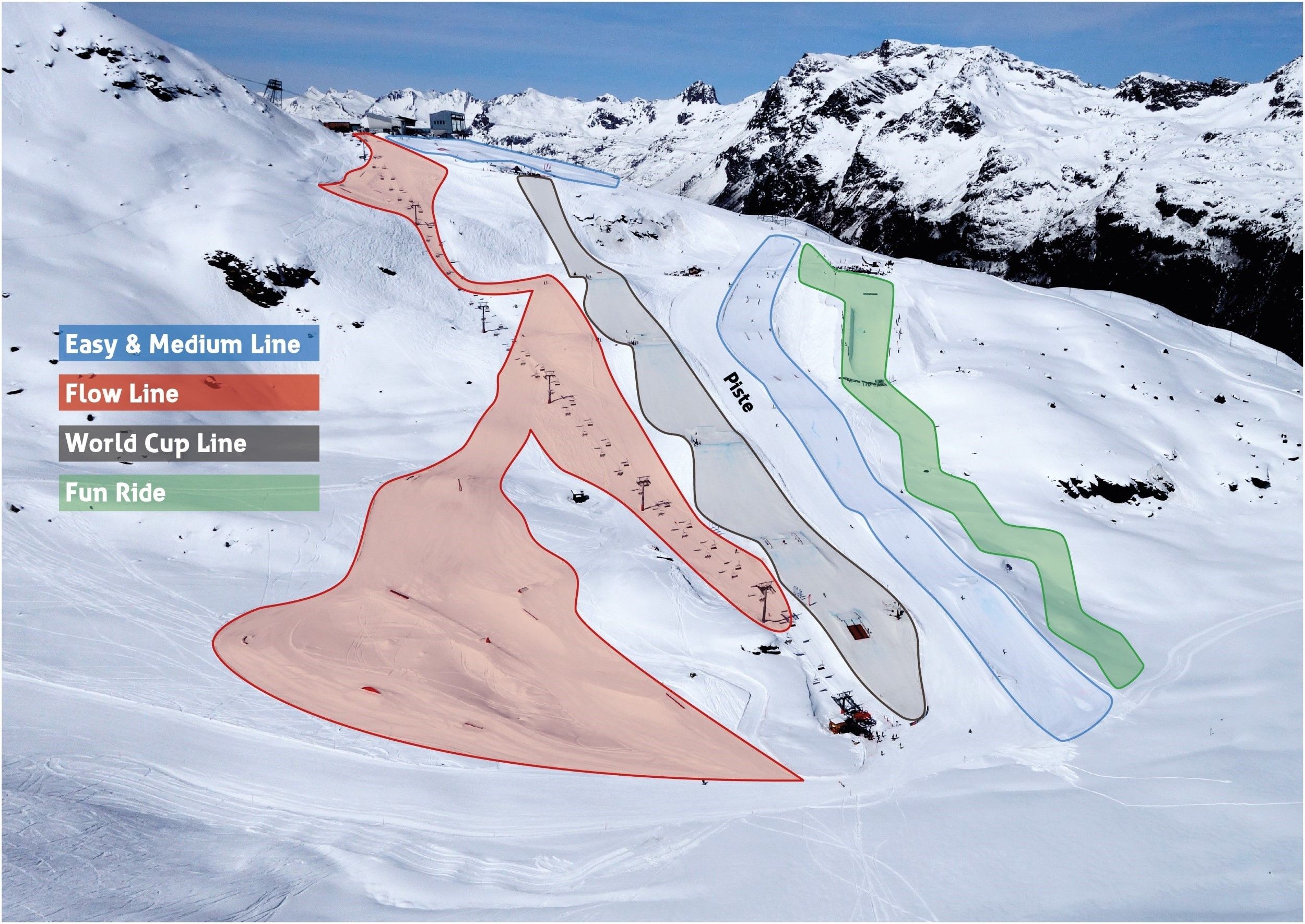 Corvatsch Freestyle Park oferuje różne linie dla wszystkich poziomów umiejętności. Zarówno początkujący, jak i profesjonaliści mogą tu doskonalić swoje triki na różnych kickerach, railach i boxach. Jest tu nawet mały halfpipe i bag jump - dla tych, którzy chcą najpierw wypróbować swoje skoki na bezpiecznym terenie. Program freestyle'owy uzupełnia tor do boardercrossu. Park gościł już kilka międzynarodowych zawodów.